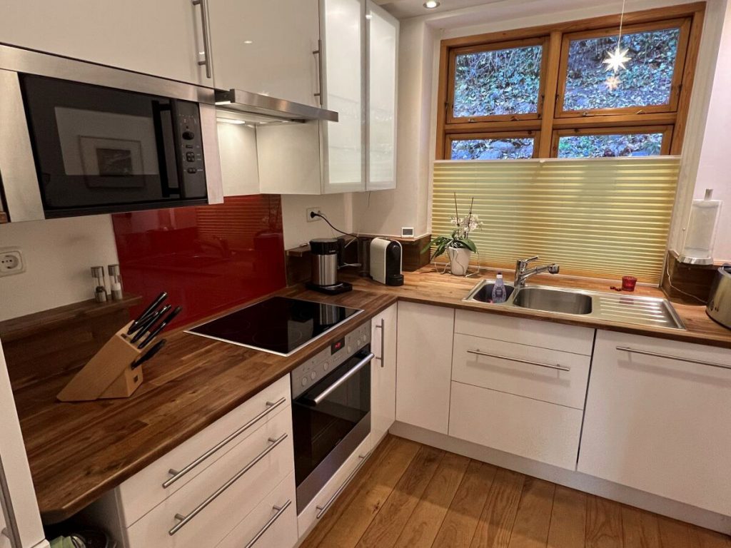 Unsere komplett ausgestattete Küche lässt keine Wünsche offen. Ob Sie ein schnelles Frühstück zubereiten oder ein festliches Dinner für Ihre Liebsten kochen möchten – Sie finden hier alles, was Sie brauchen. Ein besonderes Highlight sind die kleinen Aufmerksamkeiten, die wir für Sie bereithalten: Frische Blumen, ein hausgemachter Kuchen und eine Flasche Wein zur Begrüßung. So beginnt Ihr Urlaub schon mit einem Gefühl von purer Entspannung.