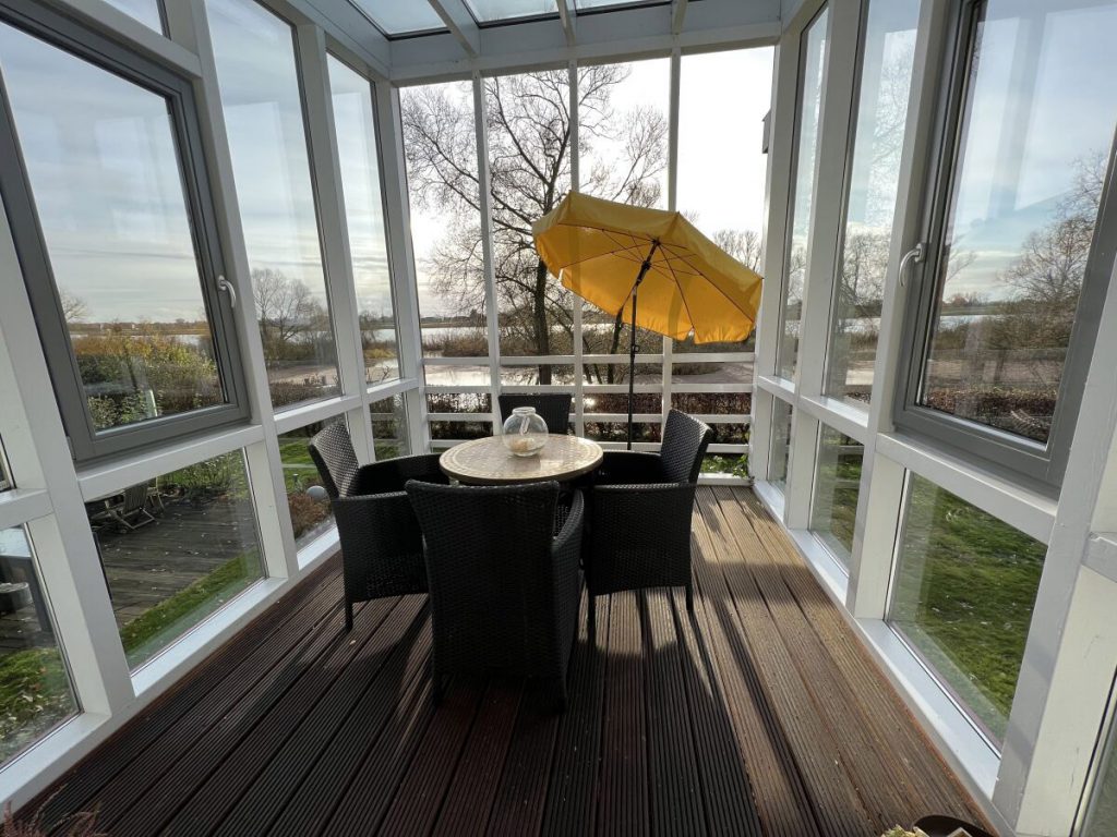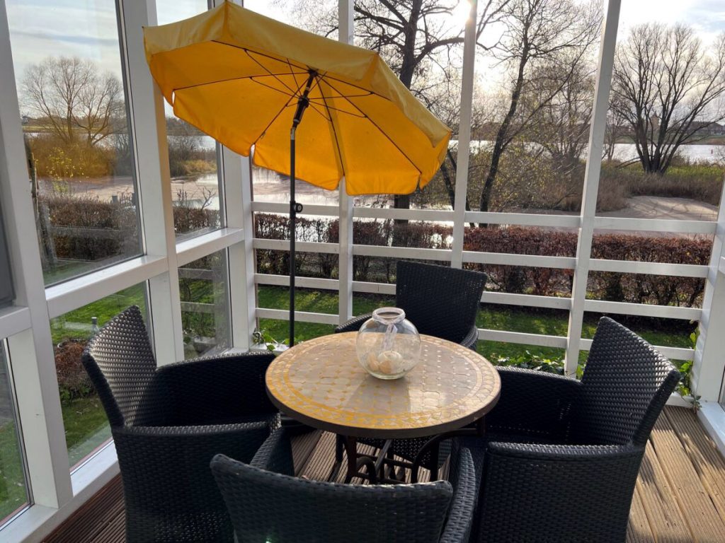 Die absolute Krönung des Biberlofts ist die großzügige Elbloggia. Ein überdachter Außenbereich, der Ihnen zu jeder Tageszeit einen atemberaubenden Blick auf die Elblandschaft bietet. Hier können Sie Ihr Frühstück mit Vogelgesang und den Klängen der Elbfrachter genießen oder bei einem Glas Wein den Sonnenuntergang beobachten. „Es ist wie ein Blick ins Paradies“, wie es unsere Gäste treffend beschrieben haben. Biber, Fischreiher und andere Tiere zeigen sich hier oft in ihrer vollen Pracht – ein echtes Naturerlebnis.