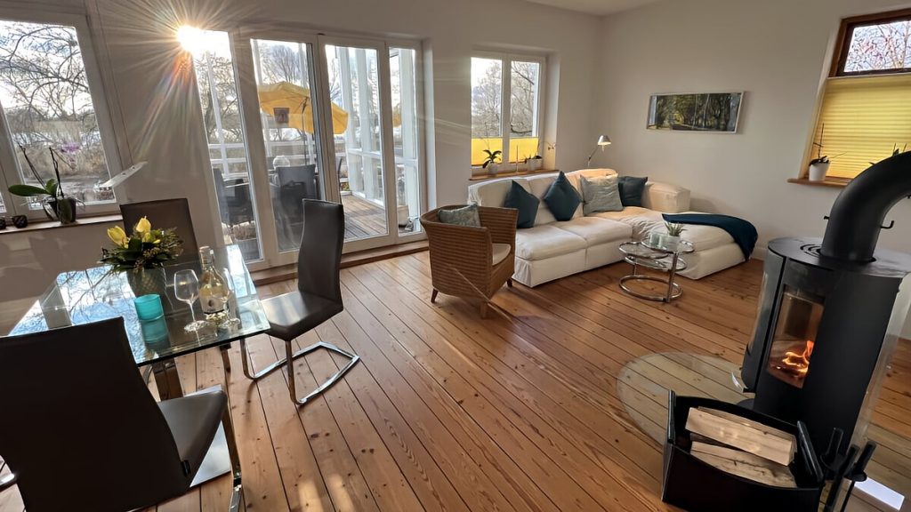 Schon beim Betreten des Biberlofts werden Sie von der gemütlichen und stilvollen Einrichtung begeistert sein. Helle, freundliche Farben, geschmackvolle Dekorationen und hochwertige Möbel sorgen dafür, dass Sie sich von der ersten Sekunde an wohlfühlen. Dank großer Fensterfronten wird der Wohnbereich in warmes Tageslicht getaucht und eröffnet einen fantastischen Blick auf die Elbe und die umliegende Natur. Der perfekte Ort, um nach einem ereignisreichen Tag zu entspannen – der Fernseher bleibt bei uns oft unbenutzt, denn die Natur bietet Unterhaltung pur!
